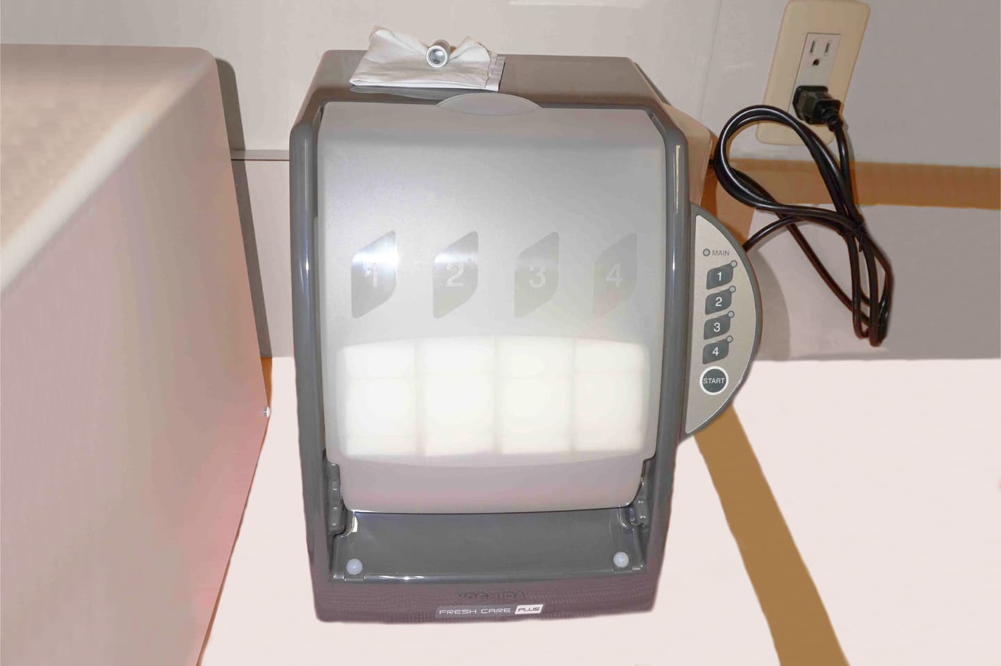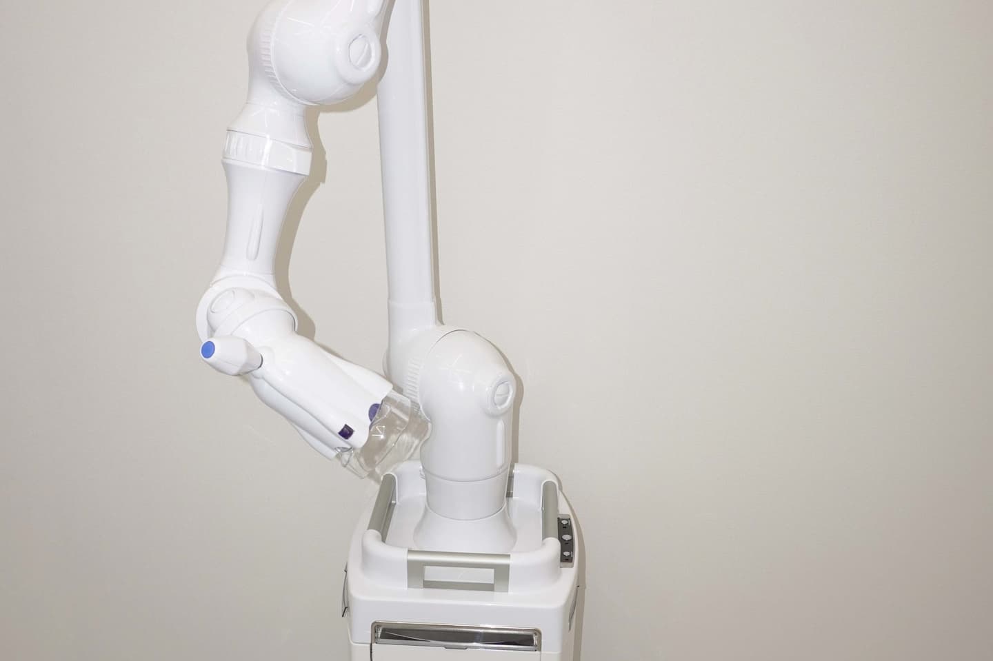 歯を削る際、目に見えない小さな粒子や粉塵が飛散します。この粉塵の中には金属片や細菌などが含まれており、衛生上好ましくありません。口腔外バキュームは吸引しきれない細かい汚染物質を素早く吸引し、診療室内を清潔な状態に保ちます。