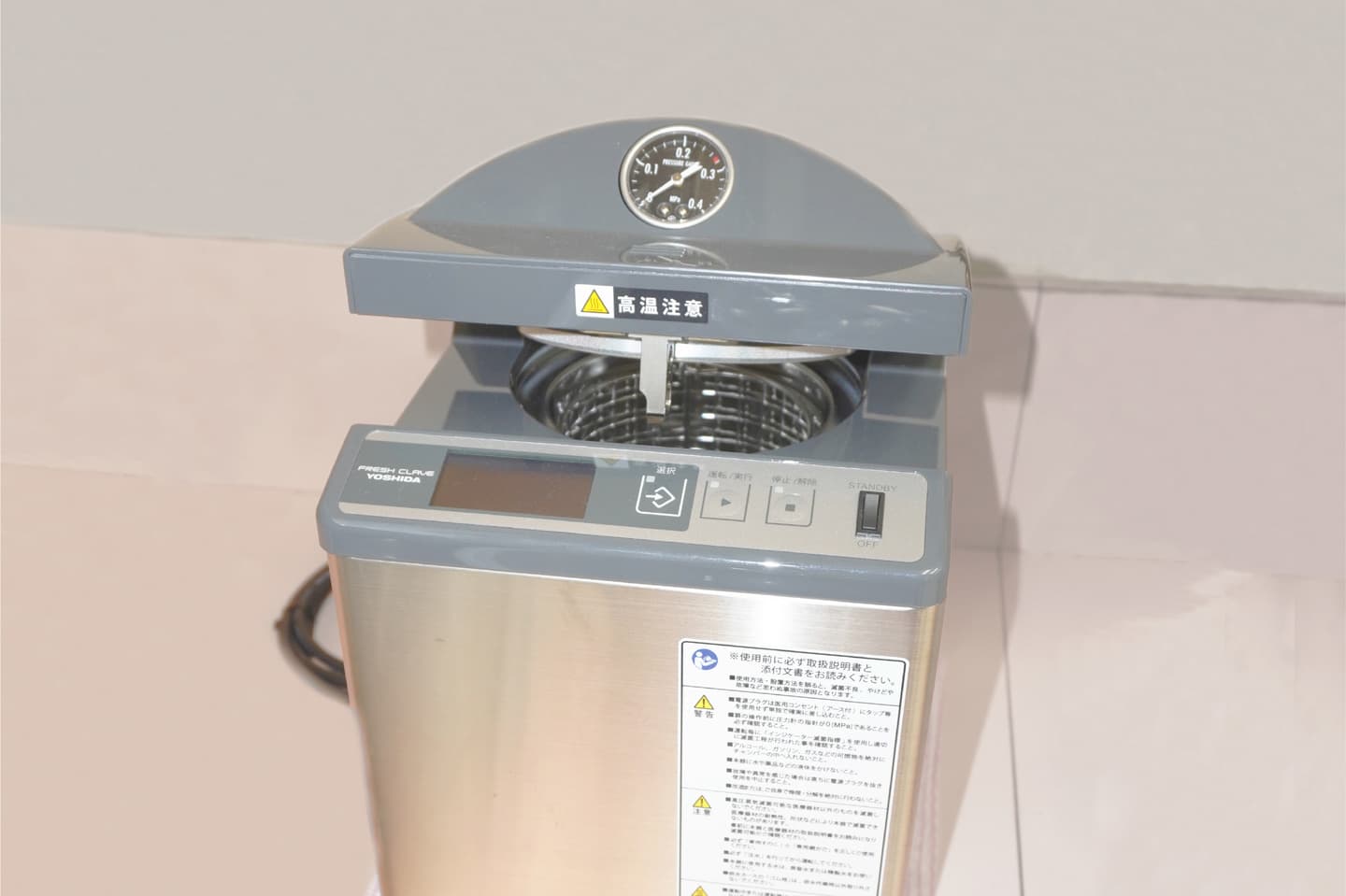 患者様により安心安全な環境を作るため、お口の中で使用する器具は専用の機器を用いた洗浄・滅菌処理を徹底しております。